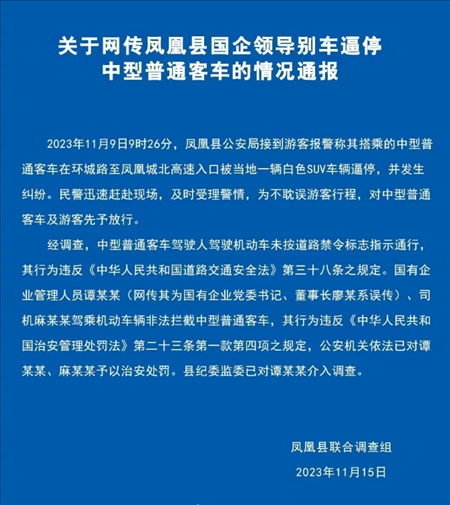 ·官方通報(bào)網(wǎng)傳國(guó)企領(lǐng)導(dǎo)別停客車(chē):客車(chē)違規(guī)行駛,被國(guó)企員工非法攔截。