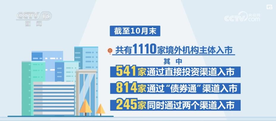 在資金凈流入的同時(shí),銀行間債券市場(chǎng)的境外機(jī)構(gòu)參與數(shù)量也在不斷增加,截至10月末,共有1110家境外機(jī)構(gòu)主體入市,其中541家通過(guò)直接投資渠道入市,814家通過(guò)“債券通”渠道入市,245家同時(shí)通過(guò)兩個(gè)渠道入市。