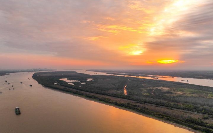 長(zhǎng)江一路浩蕩萬(wàn)里,奔流入海前在江蘇張家港拐了最后一道彎。