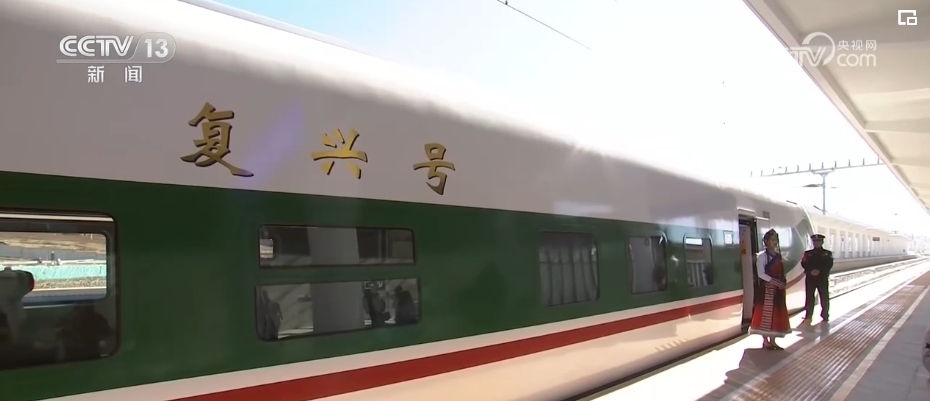 總臺記者 劉文杰:這是一款特別針對滇藏鐵路沿線高原、高寒環(huán)境設(shè)計的動車組。整列車的涂裝是以“中國紅”為腰帶、以“國槐綠”為窗帶,用“長城灰”進行點綴,整體外觀大氣優(yōu)美。