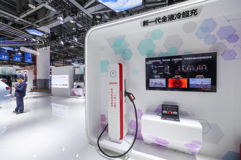 這是11月23日在第二屆全球數(shù)字貿(mào)易博覽會展館內(nèi)拍攝的華為全液冷超充技術(shù)展示。新華社記者 徐昱 攝