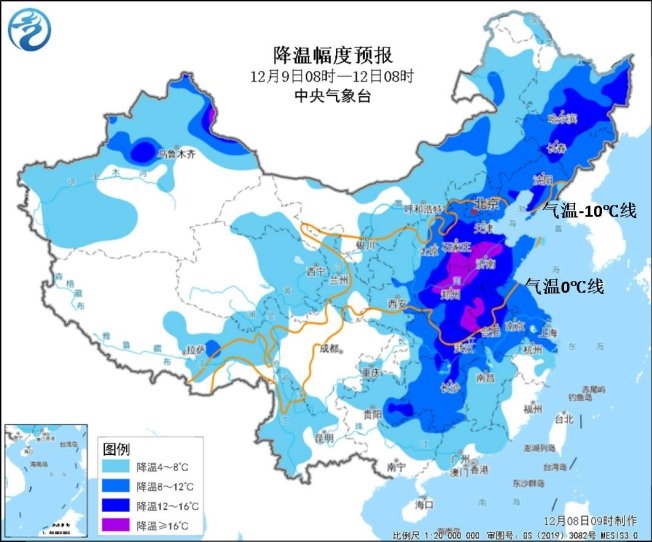 大風降溫預報:預計9日至11日,受較強冷空氣影響,東北地區(qū)、華北、黃淮、江漢、江淮、江南西部和北部等地氣溫下降6~10℃,東北地區(qū)中部、華北南部、黃淮等地降溫幅度可達12℃以上;12日早晨,最低氣溫0℃線將南壓到湖北中部至蘇皖北部一帶。期間,長江以北大部地區(qū)有4~6級偏北風,陣風7~8級;渤海、黃海、東海海域有5~7級風、陣風8~9級。