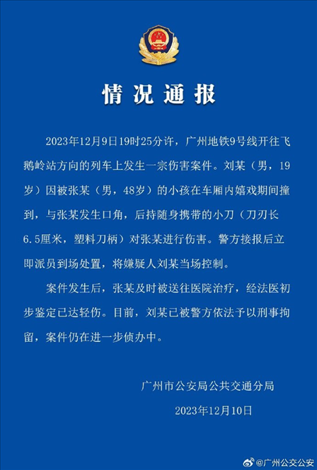 ·警方通報“廣州地鐵9號線持刀傷人事件”,廣州地鐵回應:涉案刀具不在管制范圍內(nèi)。
