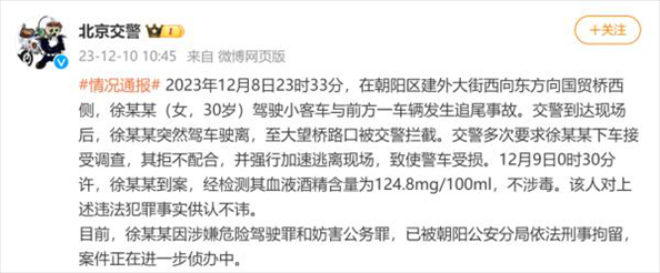 ·北京交警通報:一女子醉駕肇事逃逸并撞壞警車,已被刑拘。