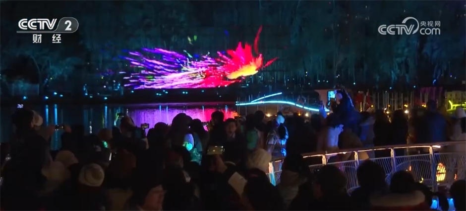 總臺記者 魏雨彤:我現(xiàn)在所在的商圈正是燈光節(jié)的核心區(qū)域,柔和的燈光線條點(diǎn)亮樓宇建筑的天際線,一路繁華一路景,各色燈光交相輝映,讓夜晚變得多姿多彩。