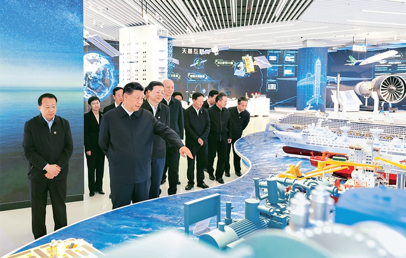 2023年11月28日至12月2日,中共中央總書記、國(guó)家主席、中央軍委主席習(xí)近平在上??疾?。這是11月28日下午,習(xí)近平在浦東新區(qū)張江科學(xué)城參觀上??萍紕?chuàng)新成果展。 新華社記者 王曄/攝