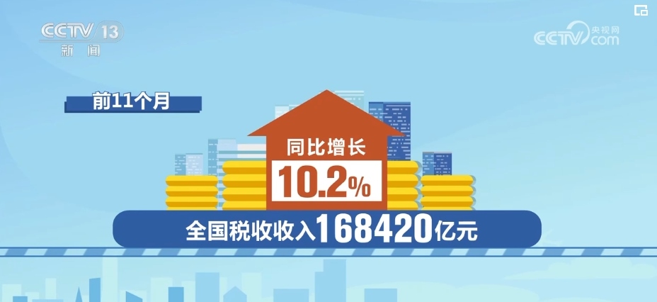 總體來(lái)看,11月當(dāng)月,全國(guó)稅收收入10579億元,同比增長(zhǎng)3.2%。前11個(gè)月,全國(guó)稅收收入168420億元,同比增長(zhǎng)10.2%。
