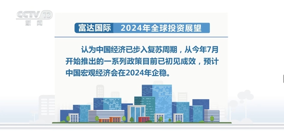 深耕中國多年的富達國際在月初發(fā)布的2024年全球投資展望認為中國經(jīng)濟已步入復蘇周期,從2023年7月開始推出的一系列政策目前已初見成效,預計中國宏觀經(jīng)濟會在2024年企穩(wěn)。