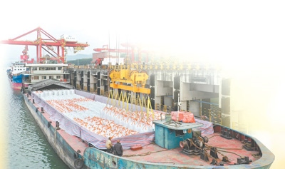 “龍頭港是糧食到達(dá)涪陵后的陸運(yùn)起點。憑借涪陵區(qū)完備的高速公路網(wǎng)和鐵路專線,到港糧食基本能在24小時內(nèi)到達(dá)市內(nèi)的其他區(qū)縣?!备⒘陞^(qū)綜合經(jīng)濟(jì)研究中心副主任周康龍介紹,涪陵擁有5條過境高速公路,通車?yán)锍踢_(dá)175公里,鐵路通車?yán)锍踢_(dá)207公里。去年,涪陵向重慶中心城區(qū)、周邊區(qū)縣、相鄰省份提供原糧9萬噸、成品糧油32萬噸、豆粕15萬噸、飼料35萬噸。