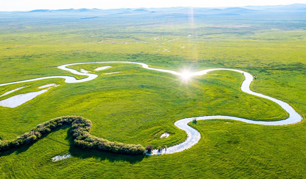 這是6月12日在內蒙古自治區(qū)錫林郭勒盟東北部拍攝的烏拉蓋草原(無人機照片)。