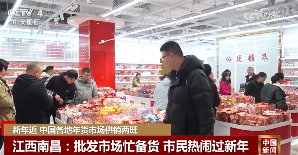 在江西南昌的這個(gè)批發(fā)市場(chǎng),琳瑯滿目的商品擺滿貨架,糖果、干貨也到了銷(xiāo)量最好的時(shí)候。一大早,這里就迎來(lái)了前來(lái)購(gòu)物的市民。