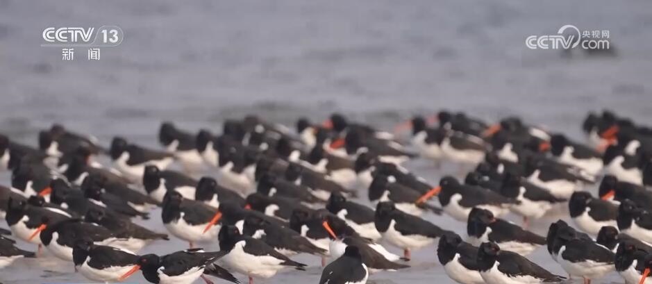 江蘇如東:大批蠣鷸聚集沿海灘涂 場面壯觀
