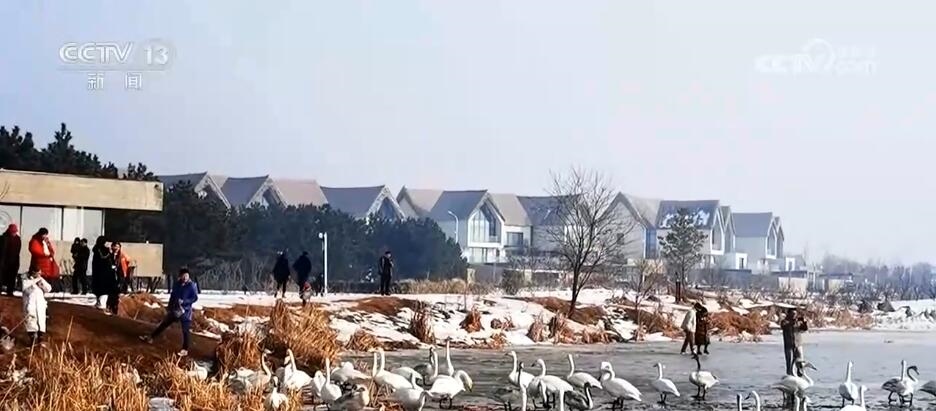 山東榮成:大天鵝雪中嬉戲 警民聯(lián)手守護生態(tài)美景