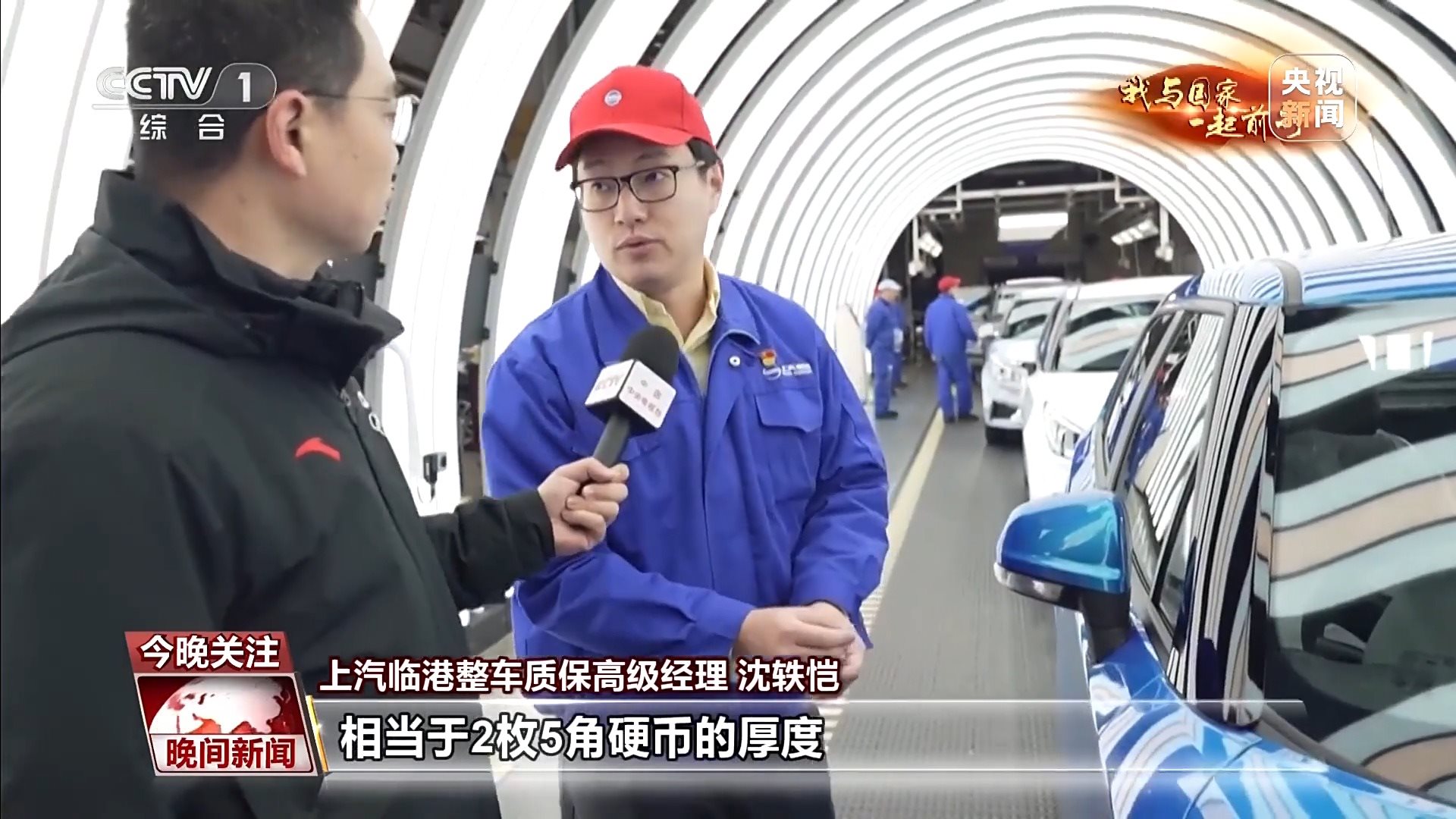 上汽臨港整車質(zhì)保高級(jí)經(jīng)理 沈軼愷:比如我們對(duì)于車門的縫隙控制,都有嚴(yán)格的質(zhì)量控制,確保它們拼合在一起是均勻的一致的。每條縫只有4毫米的間隙,相當(dāng)于2枚5角硬幣的厚度。