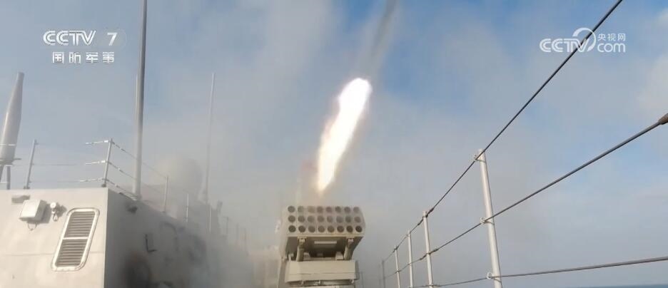 主炮副炮同時(shí)開(kāi)火,炮聲震天。一枚枚炮彈呼嘯而出,對(duì)“敵”目標(biāo)進(jìn)行連續(xù)打擊,火光閃處,海浪滾滾,硝煙彌漫。