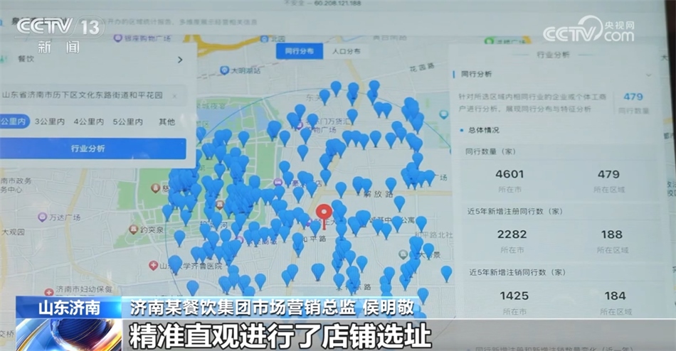 侯明敬告訴記者,給他選址做“決策參謀”的是濟南市多部門數(shù)據(jù)資源整合形成的這個“商業(yè)選址”應(yīng)用。它基于多部門的公共數(shù)據(jù),可以根據(jù)店鋪類型和區(qū)域范圍,以地圖的形式為中小企業(yè)經(jīng)營者提供人口密度、客源分布、同行經(jīng)營情況等查詢服務(wù),打通了實體店選址時無章可循的痛點堵點,降低了經(jīng)營風險,增強了企業(yè)競爭力。