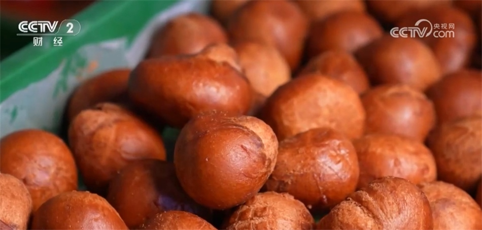 “牛腰”是山西朔州應(yīng)縣的特色小吃,也是當(dāng)?shù)胤昴赀^節(jié)招待親朋好友的必備美食。臨近春節(jié),朔州市應(yīng)縣年貨市場上,香酥可口的“牛腰”迎來銷售旺季。