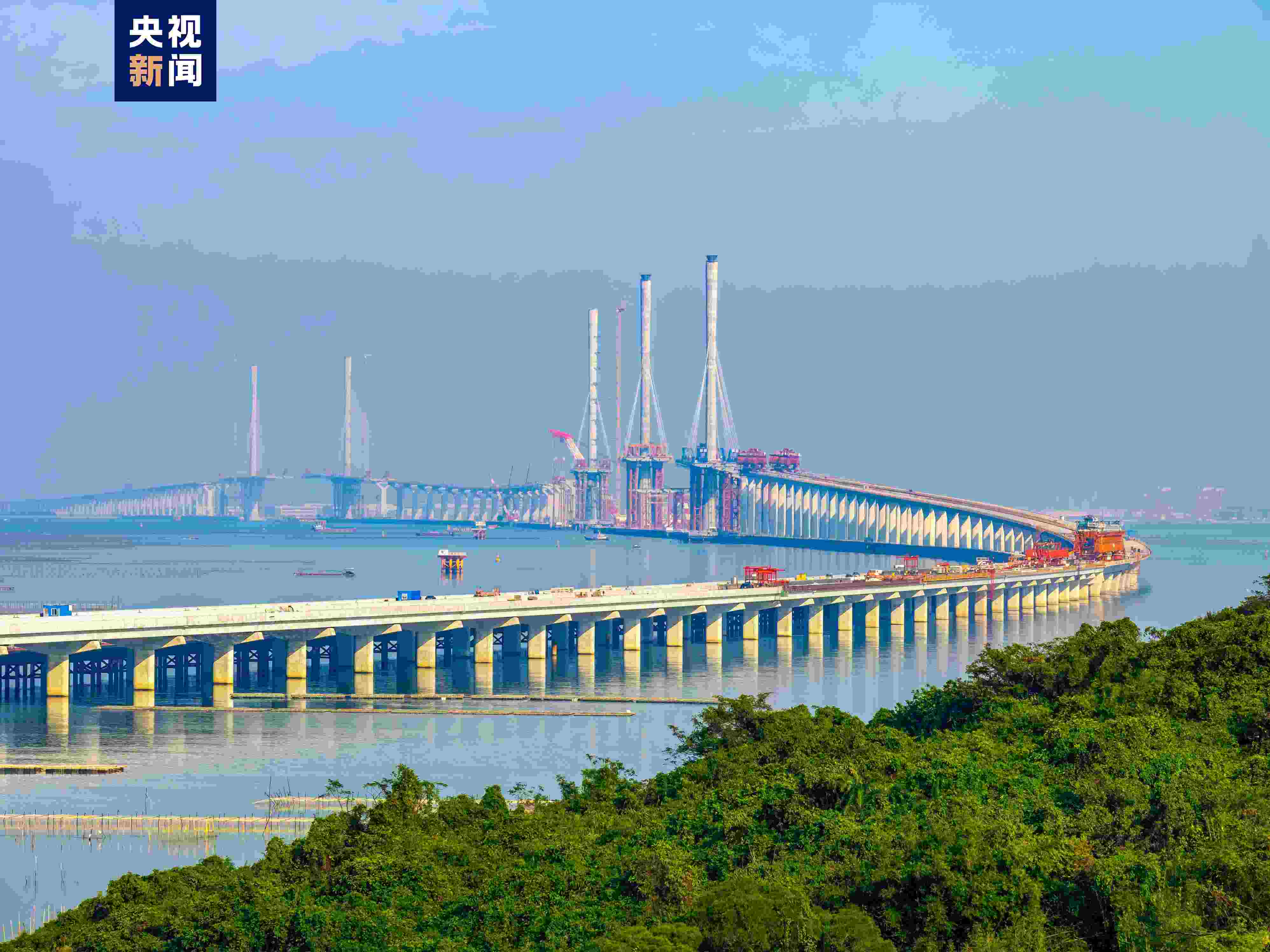 1月15日下午,隨著最后一片鋼箱梁架設(shè)到位,黃茅??绾Mǖ乐幸龢蝽樌淆?。兩座海上主橋——黃茅海大橋與高欄港大橋成功完成海上“牽手”。
