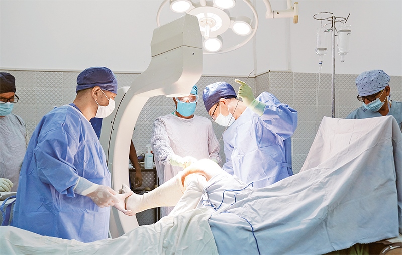 圖為2023年3月1日,中國第21批援吉布提醫(yī)療隊隊員在吉布提首都吉布提市貝爾蒂耶醫(yī)院為當(dāng)?shù)鼗颊咦鍪中g(shù)。中國第21批援吉布提醫(yī)療隊于2022年1月抵達吉布提開展為期15個月的援外醫(yī)療任務(wù)。 新華社記者 韓旭/攝
