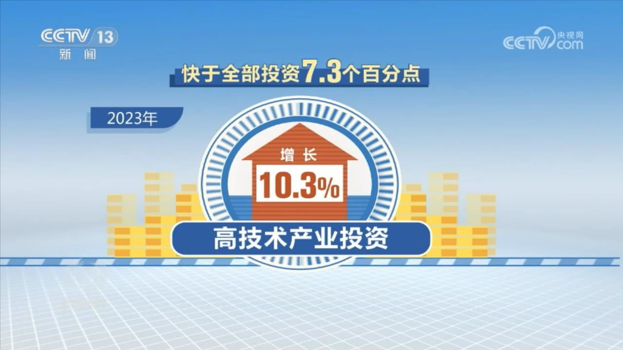 在投資領(lǐng)域,受房地產(chǎn)市場(chǎng)深度調(diào)整影響,2023年全年全國(guó)固定資產(chǎn)投資比上一年增長(zhǎng)3%,而扣除房地產(chǎn)開發(fā)投資,民間投資增長(zhǎng)9.2%。尤為值得注意的是,2023年高技術(shù)產(chǎn)業(yè)投資增長(zhǎng)10.3%,快于全部投資7.3個(gè)百分點(diǎn)。其中,高技術(shù)制造業(yè)、高技術(shù)服務(wù)業(yè)投資分別增長(zhǎng)9.9%、11.4%。