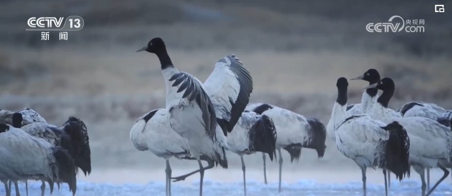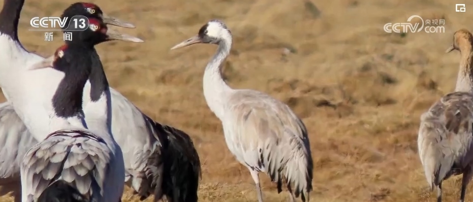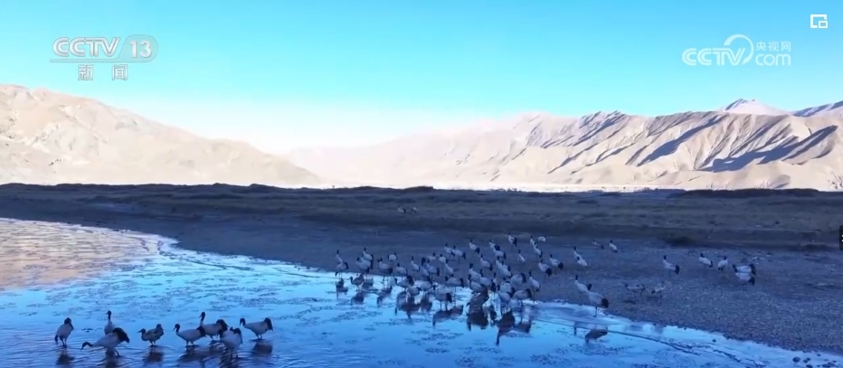 西藏的越冬水鳥主要有黑頸鶴、斑頭雁、赤麻鴨等。監(jiān)測隊設(shè)立了505個觀測點,共記錄調(diào)查軌跡數(shù)407條,觀測到水鳥45種。其中,包括兩種國家一級保護動物,分別是黑頸鶴和白尾海雕。7種國家二級保護動物,分別是灰鶴、鴛鴦、白額雁、斑頭秋沙鴨、黑頸鸊鷉、角鸊鷉、花臉鴨。還有重要生態(tài)、科學(xué)、社會價值的陸生野生動物36種。