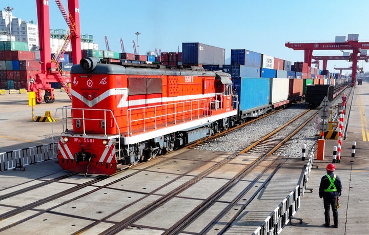 水路大進大出,鐵路風馳電掣。元旦當天,連云港新年開行的首趟中歐班列載著汽車配件、家用電器等,從中哈物流合作基地出發(fā),駛往中亞國家;同日,南通海安物流基地內(nèi),一列滿載貨物的班列鳴笛啟程開往越南河內(nèi)。有去有回,不久之后,“鋼鐵駝隊”會把來自歐洲、中亞和東南亞的機械、木材等運回中國,開啟新一輪國際循環(huán)。