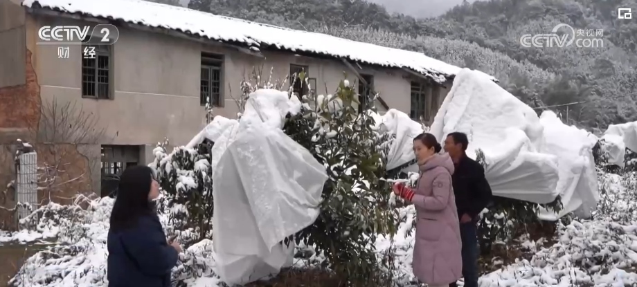 受冷空氣影響,近段時間,福建三明市溫度持續(xù)走低。在將樂縣漠源鄉(xiāng),3萬多株西柚果樹被大雪覆蓋,容易造成果樹枝條壓彎折斷,出現(xiàn)局部凍害。當(dāng)?shù)亟M織人員到現(xiàn)場指導(dǎo)企業(yè)做好防寒防凍工作,保障果樹安全度過本輪寒潮。