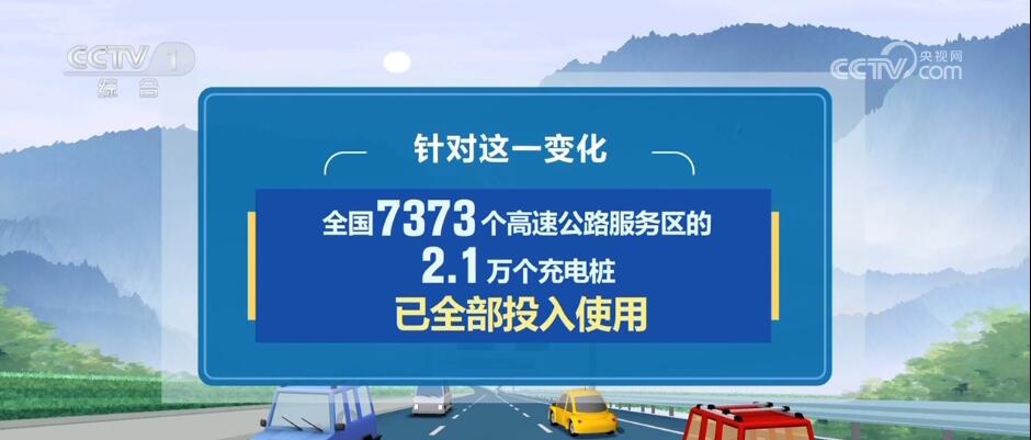 今年公路出行還有一個新變化,就是在小客車出行當中,新能源車輛占比增多。針對這一變化,目前,全國7373個高速公路服務區(qū)的2.1萬個充電樁已全部投入使用。