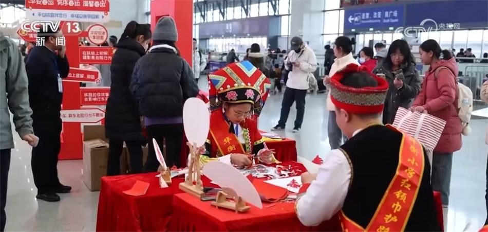 在哈爾濱、西安、上海、廣州各地的火車站,送“福”、快閃、簽名打卡、文藝表演、民俗文化展示等豐富多彩的活動讓人們帶上一份好心情,踏上溫馨的團圓之旅。