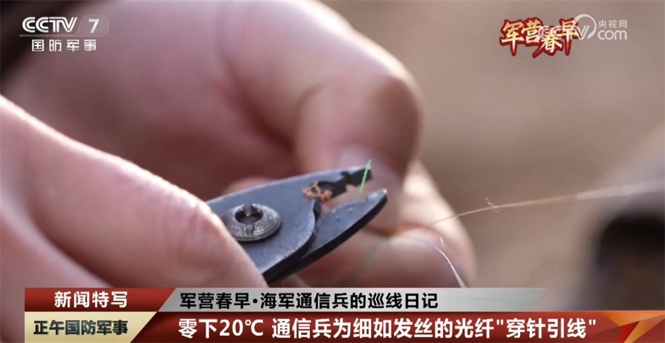 海軍某總站 鄭乾:因為光纖是玻璃材質的,冬天特別寒冷,就會導致光纖特別容易斷裂,特別是在光纖切割刀切割光纖的時候,一不小心就會砸斷,有可能出現(xiàn)強行熔接的情況,一旦出現(xiàn)這種情況,任務就(可能)因為(數(shù)據(jù))無法使用,任務就會無法開展、失敗了。