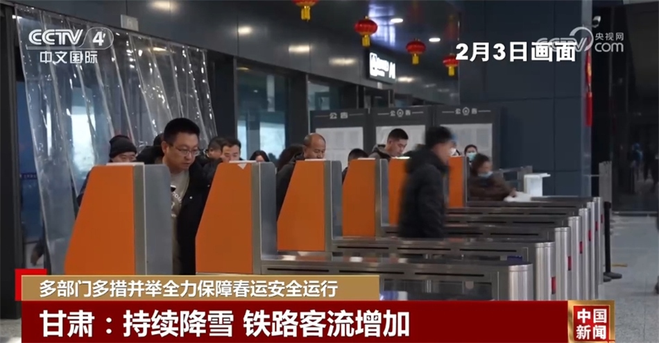 總臺(tái)記者 張磊:我現(xiàn)在所在的位置是蘭州火車(chē)站,現(xiàn)在,蘭州的降雪天氣仍在持續(xù)。受降雪影響,蘭州客運(yùn)中心的42條線路、136輛班線客車(chē)目前均已停發(fā),客流涌向鐵路,在2月2日,蘭州鐵路局發(fā)送人數(shù)就超過(guò)了24萬(wàn)人,同比增加3萬(wàn)多人。針對(duì)這種情況,蘭州鐵路局優(yōu)化列車(chē)開(kāi)行方案,增加運(yùn)力投放,以滿足旅客的乘車(chē)需求。