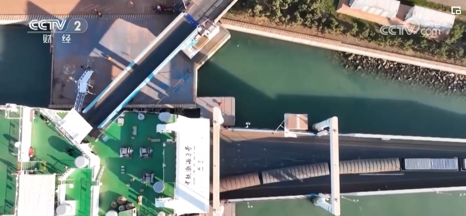 中鐵渤海3號(hào)渡船全長(zhǎng)182.6米、寬24.8米,滿載排水量可達(dá)16229噸,單航次可載運(yùn)一列50節(jié)貨物列車(chē)和50輛載重汽車(chē)、25輛小汽車(chē)以及716名旅客。