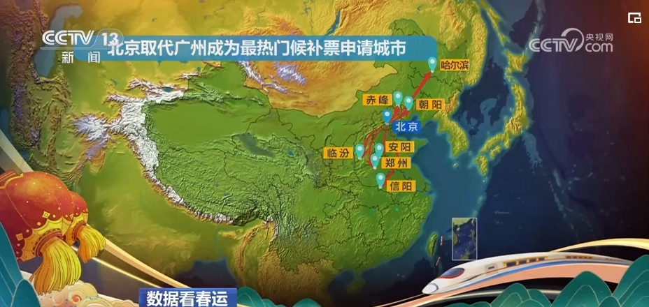 申請(qǐng)候補(bǔ)票的熱門(mén)路線2月7日出現(xiàn)新變化,北京取代廣州成為候補(bǔ)票申請(qǐng)最熱門(mén)的出發(fā)城市。從北京到朝陽(yáng)、赤峰、哈爾濱、鄭州、臨汾、信陽(yáng)、安陽(yáng)這7個(gè)城市的候補(bǔ)票最為緊張。而從上海出發(fā)到鄭州、武漢、周口、商丘等中部城市的候補(bǔ)票也比較緊張。