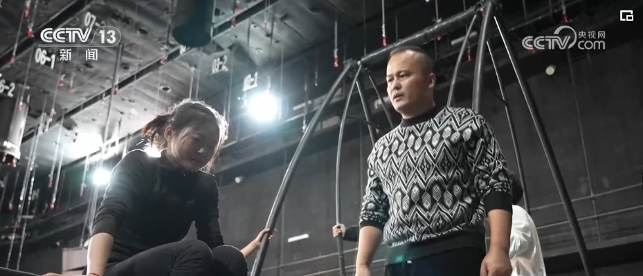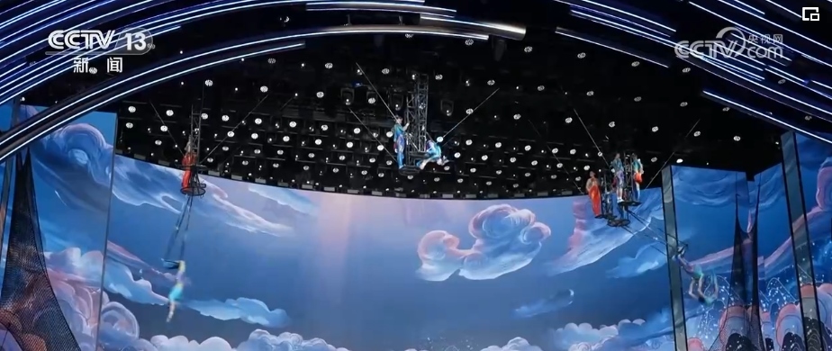 40多年來,春晚劇組首次在1號廳高空安裝飛人裝置,道具和技巧以及創(chuàng)意的融合,完美演繹了傳說中的魚躍龍門。