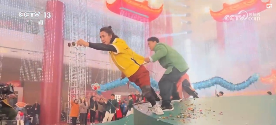 央視網(wǎng)消息:中央廣播電視總臺(tái)《2024年春節(jié)聯(lián)歡晚會(huì)》武術(shù)節(jié)目《爭(zhēng)春》由袁和平作為監(jiān)制,樊少皇、吳樾、此沙三位演員與塔溝武校的學(xué)員們,分為三支舞龍隊(duì)比拼武藝、以武爭(zhēng)春。節(jié)目中再現(xiàn)經(jīng)典武術(shù)招式,同時(shí)融入了更多生活化的情節(jié),一招一式剛?cè)岵?jì),盡顯春日里萬物競(jìng)發(fā)勃勃生機(jī)。