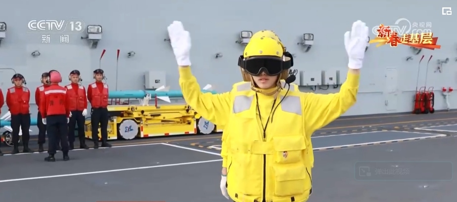 引導(dǎo)員唐曉菁的工作是負(fù)責(zé)引導(dǎo)艦載機(jī)就位、起飛。由于甲板上設(shè)備眾多,她的一舉一動(dòng)都至關(guān)重要,戰(zhàn)機(jī)起飛時(shí),她的戰(zhàn)位距離飛機(jī)發(fā)動(dòng)機(jī)只有不到20米。