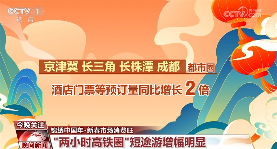 而在說走就走的短途游中,“兩小時高鐵圈”受到青睞。截至大年初一,春節(jié)假期“兩小時高鐵圈”短途游的搜索量同比增長7倍。從實際預訂情況看,京津冀、長三角、長株潭、成都都市圈等區(qū)域的酒店、門票等相關旅游產(chǎn)品預訂量同比增長2倍。