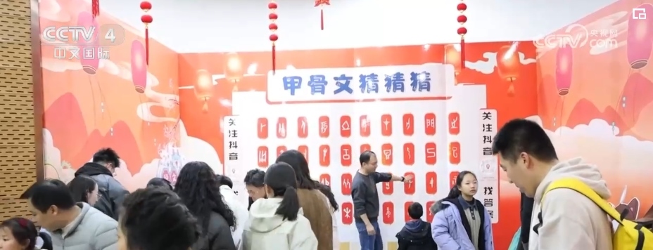 博物館內(nèi)的漢字展、漢服秀、甲骨文韻律操、文創(chuàng)集市等豐富多彩的節(jié)目,也給游客帶來了不一樣的新春體驗和感受。識讀甲骨文,能讓大家對漢字演變過程有更加直觀的認識和了解,在“甲骨文猜猜猜”游戲中,游客們認真觀察、思考展板上一個個甲骨文所對應的漢字,感受著古人的智慧和漢字的靈性與博大。