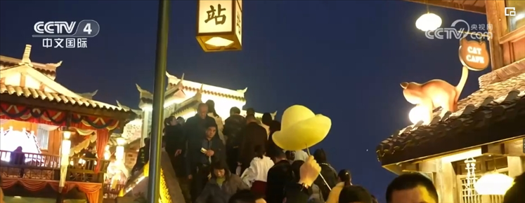 春節(jié)期間,江西撫州持續(xù)上演年味兒大戲。年俗巡街、非遺集市、非遺展演等豐富多彩的系列活動齊聚文昌里。夜幕降臨、華燈初上,古色古香的建筑在燈光的映襯下大放華彩,往來不絕的游客漫步街頭,或拍照留影,或駐足嬉戲,處處歡聲笑語。