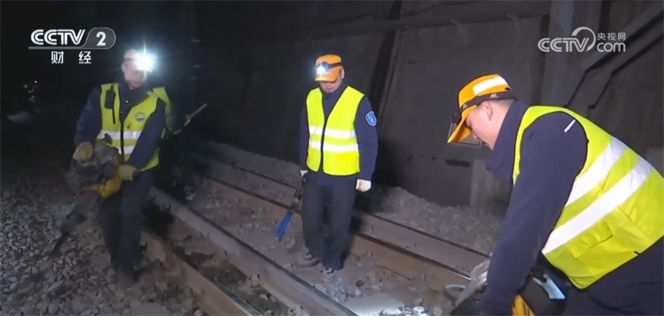 央視網(wǎng)消息:春運(yùn)期間,在襄渝鐵路川陜交界的巴山線(xiàn)路維修工區(qū),副工長(zhǎng)王庭虎和他的工友們正在加緊線(xiàn)路設(shè)備養(yǎng)護(hù)。春運(yùn)期間,他們的工作量是平常的3倍,忙碌的工作只為守護(hù)旅客的平安路。