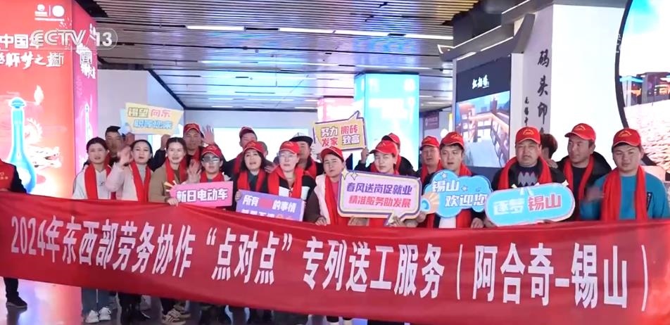 在江蘇無錫,用工企業(yè)早早來到火車站口,迎接首批新疆務(wù)工人員的到來?!包c對點”大巴車將員工直接送到企業(yè)門口。
