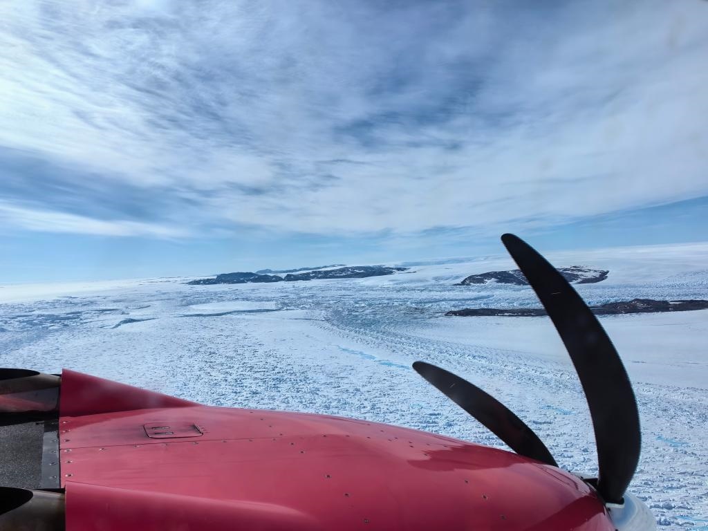 “雪鷹601”飛越冰蓋邊緣進(jìn)行航空調(diào)查。(新華社發(fā))