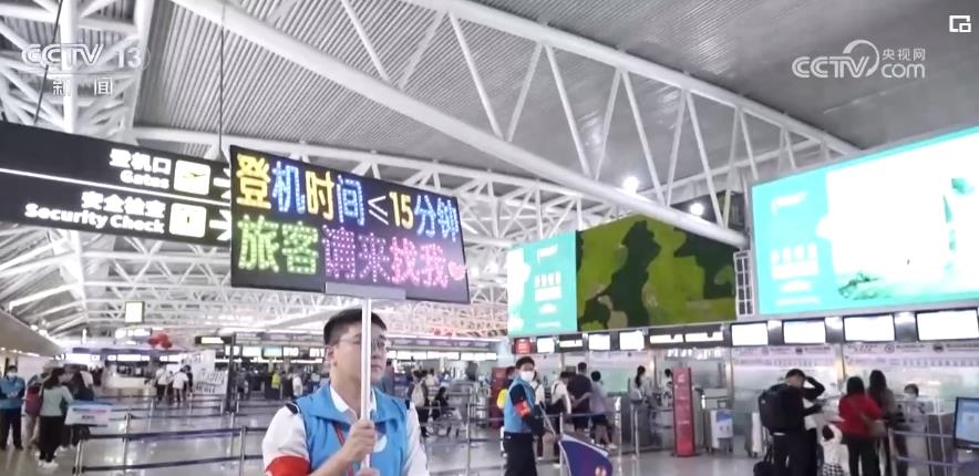 還有15分鐘登機(jī),這在平時(shí)不算晚??稍诔醢说某龈鄹叻謇?,如果沒(méi)有志愿者的及時(shí)指引,旅客就很有可能錯(cuò)過(guò)飛機(jī)。
