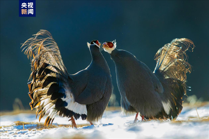山地雞中的“藍(lán)精靈”雪中起舞,組團(tuán)打卡祁連山。