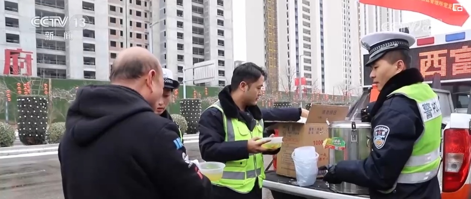 到了飯點(diǎn),當(dāng)?shù)叵嚓P(guān)部門為滯留的司乘人員送來飯菜,保障大家滯留期間的基本生活需求。
