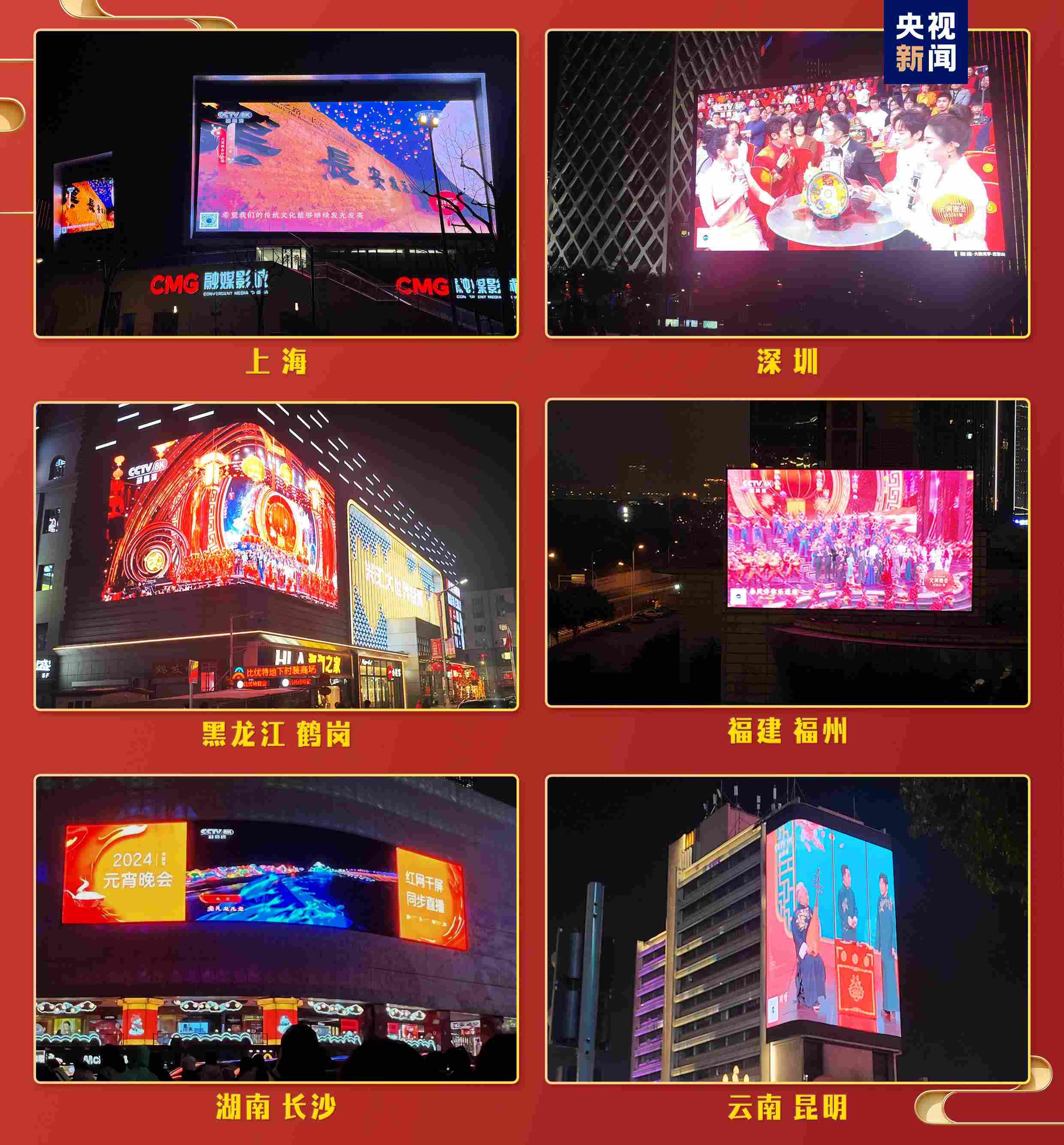 百城千屏喜“躍”街頭。元宵節(jié)當(dāng)晚,在北京、天津、上海、重慶、深圳、沈陽、長沙、成都、昆明、西寧等全國112個城市1075塊地標(biāo)大屏上同步播出元宵晚會。市民在核心商圈、生活廣場和交通樞紐等多元化場景中同步觀燈賞月看元宵晚會。
