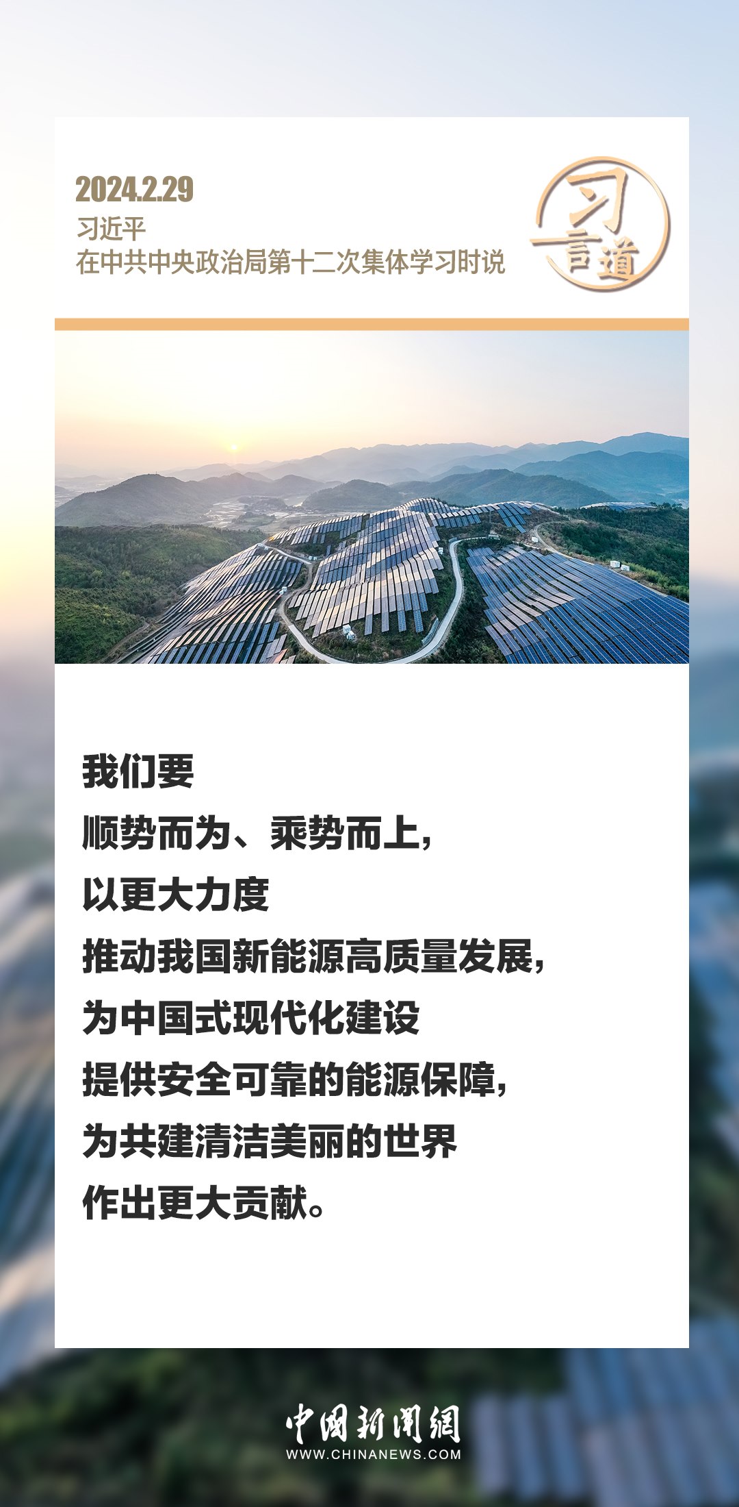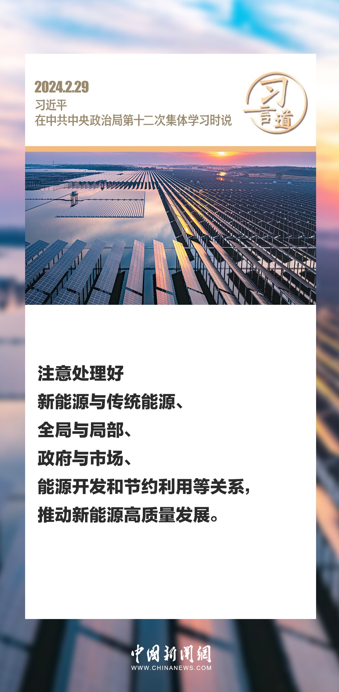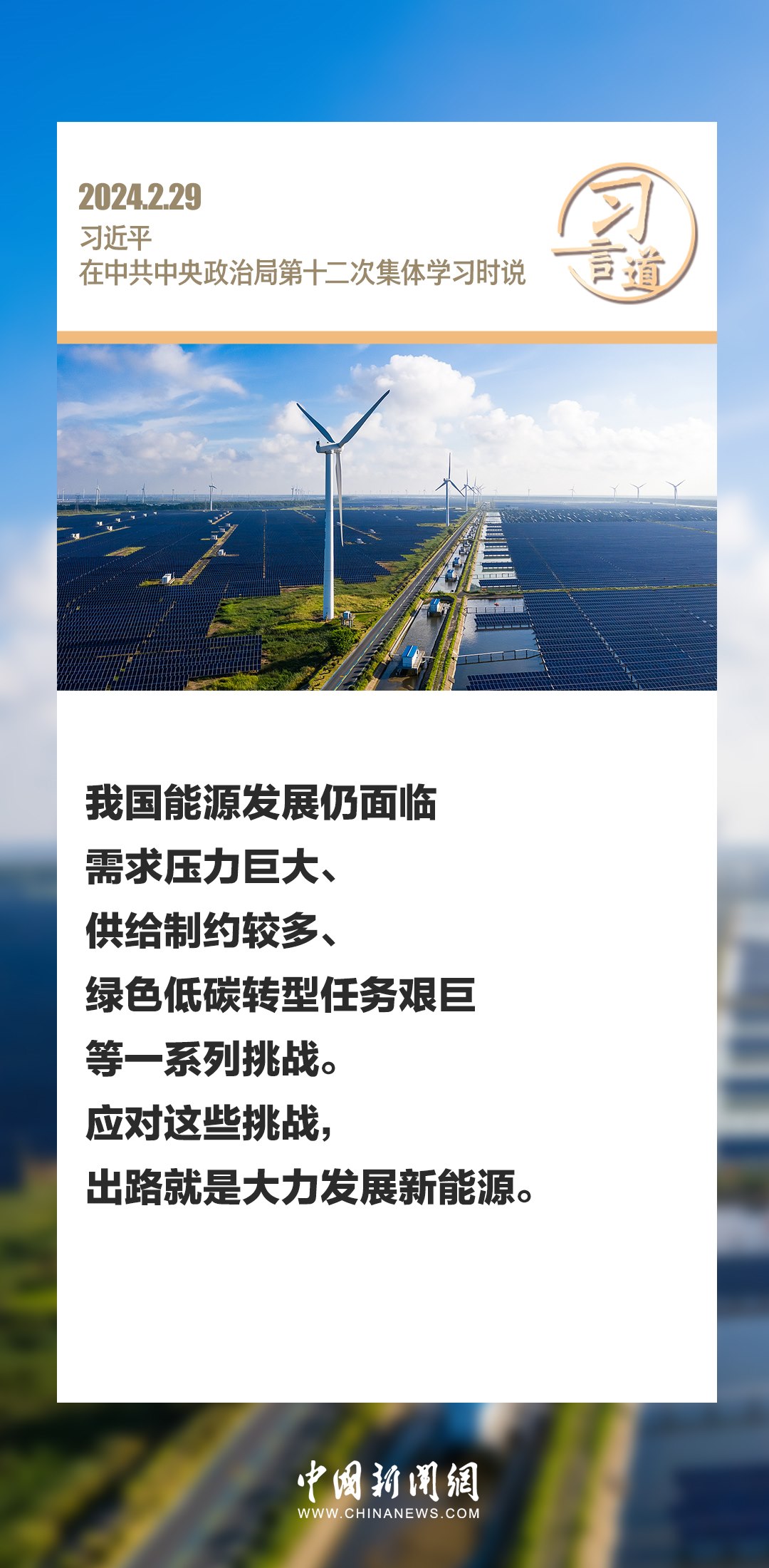 中共中央政治局2月29日下午就新能源技術(shù)與我國的能源安全進行第十二次集體學習。中共中央總書記習近平在主持學習時強調(diào)——