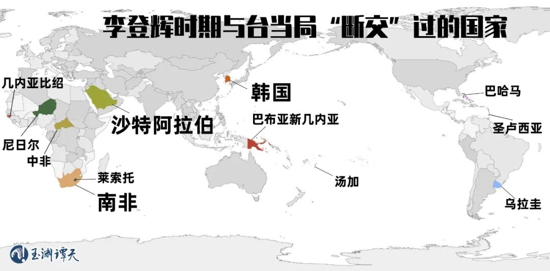 1988年,李登輝上臺(tái),擔(dān)任臺(tái)灣地區(qū)領(lǐng)導(dǎo)人。此時(shí),臺(tái)灣當(dāng)局的“邦交國(guó)”僅剩下了22個(gè)。