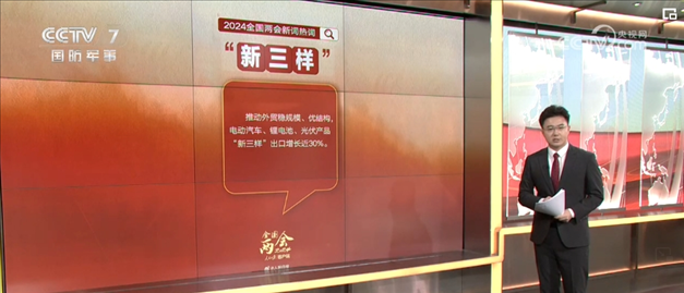 政府工作報告中提到,2023年新能源汽車產(chǎn)銷量占全國比重超過60%,“新三樣”出口增長近30%。在“部長通道”中,科技部部長陰和俊提到,新能源汽車、鋰電池、光伏組件“新三樣”,2023年出口增速喜人,為發(fā)展新質(zhì)生產(chǎn)力夯實了基礎(chǔ)、注入了動力。