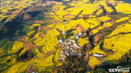 2024年3月5日,云南曲靖,羅平縣馬街鎮(zhèn)鐵廠村委會(huì)野貓洞村,油菜花開(kāi)春意濃,山間原野滿目金黃。